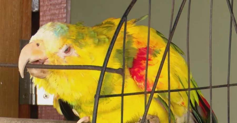 Além da resistência e da procedência, o animal chama atenção pela beleza. A cor incomum no Brasil reforça a ideia de que o papagaio não é nativo da região. O animal já apresenta sinais do tempo: está idoso, com mobilidade reduzida, mas recebe cuidados e carinho da família.