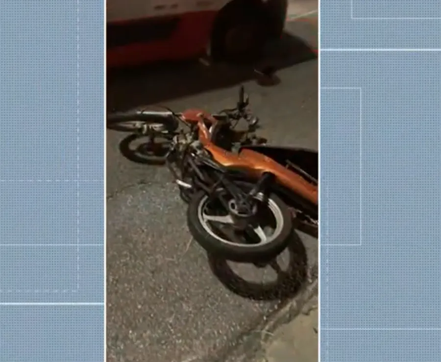 Por imagens feitas na manhã desta quarta-feira (7), uma das motos envolvidas no acidente ainda estava no local da batida.