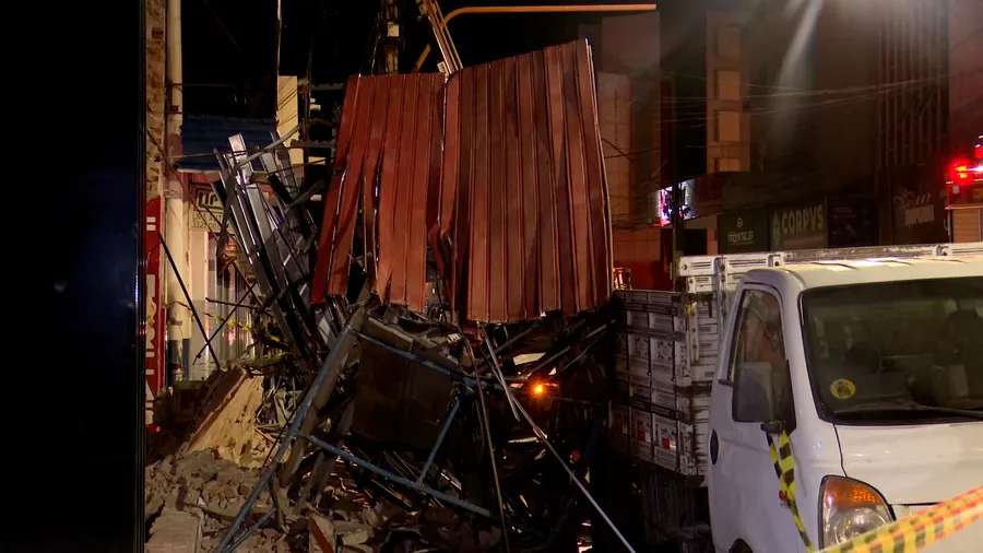 (O que desabou) foi a parede que segurava a marquise ali. Se você observar, ali tem um paredão alto. Eles estavam colocando um reforço embaixo. Ele estava segurando na hora, ele abaixou-se para segurar a escora, aí foi quando justamente ela desabou, deu nem tempo de avisar não", relatou o vigilante.
