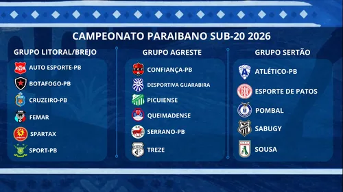 As 17 equipes que disputarão o Campeonato Paraibano Sub-20 de 2026 já estão definidas, e os grupos Litoral/Brejo e Agreste terão mais representantes que o Sertão. A competição tem início marcado para o dia 16 de maio. Pensando nisso, o Jornal da Paraíba apresenta o mapa do futebol de base no estado para a temporada.